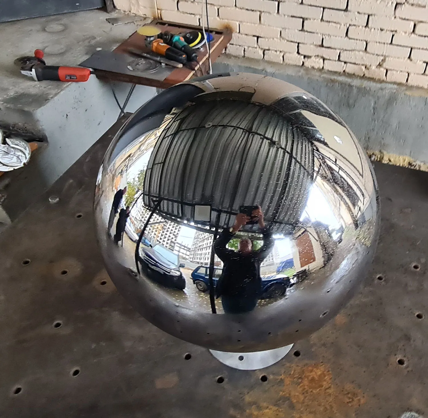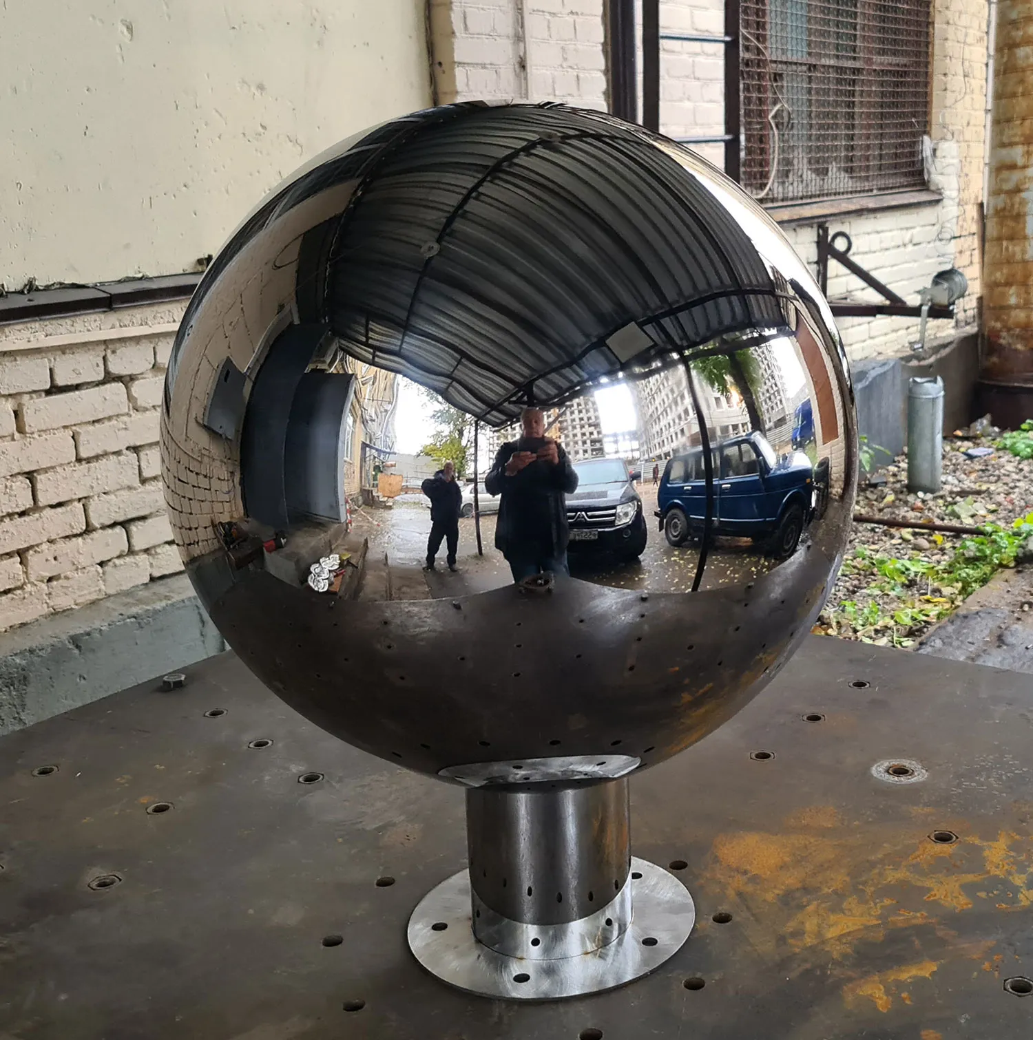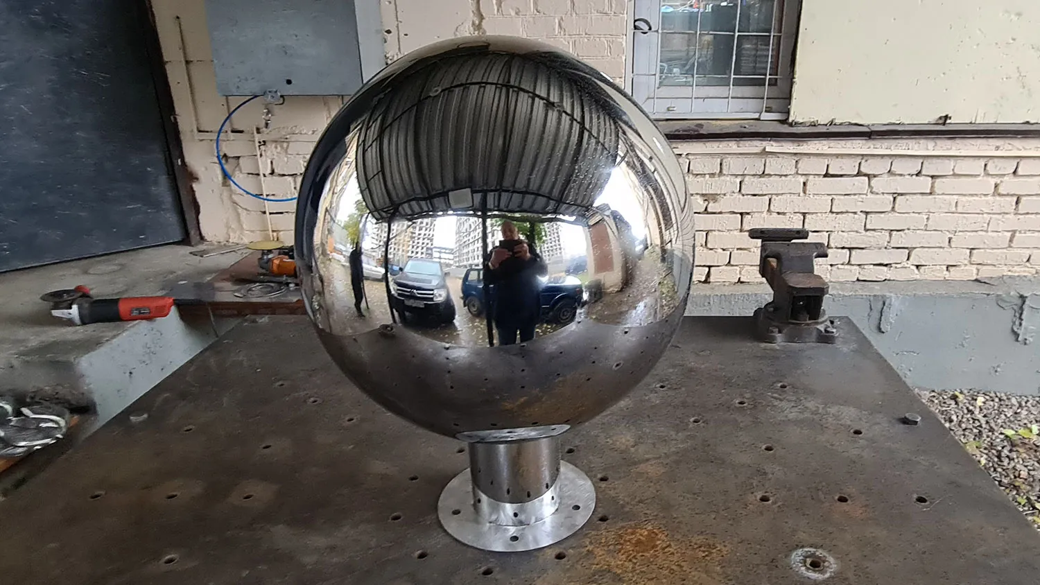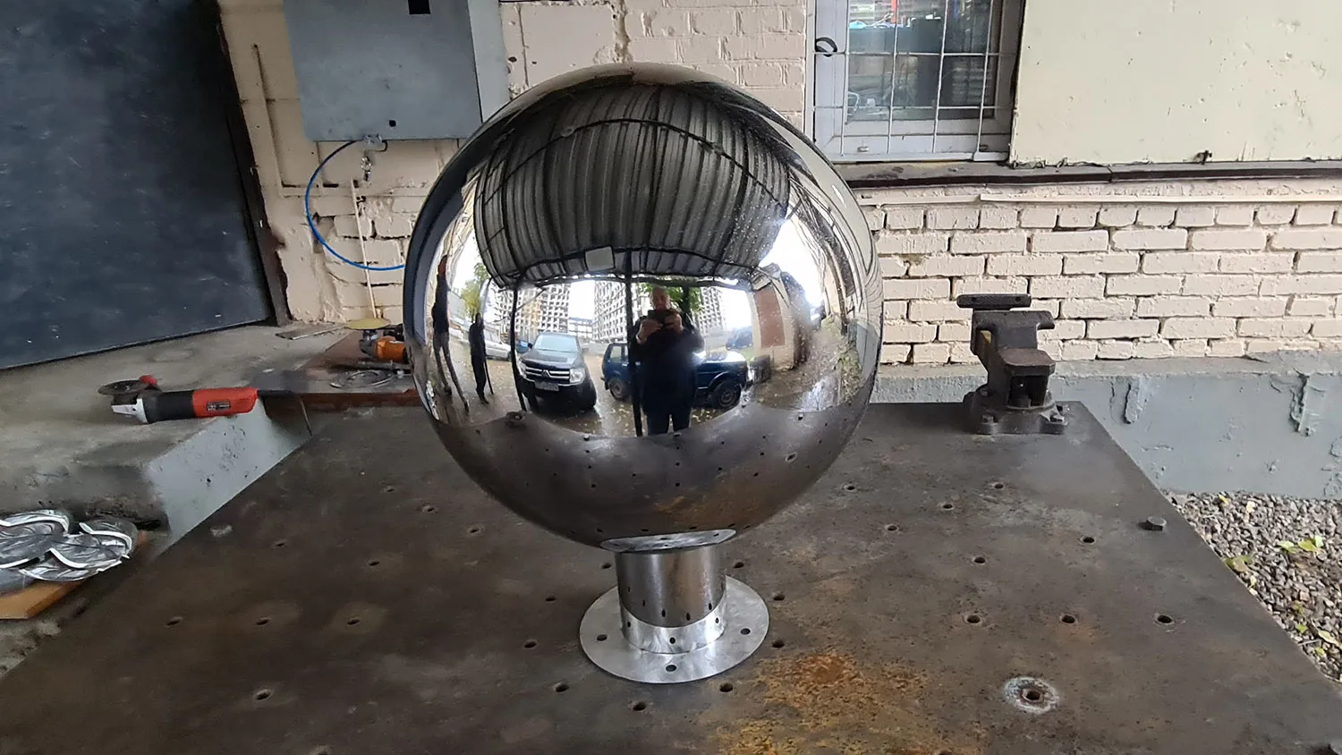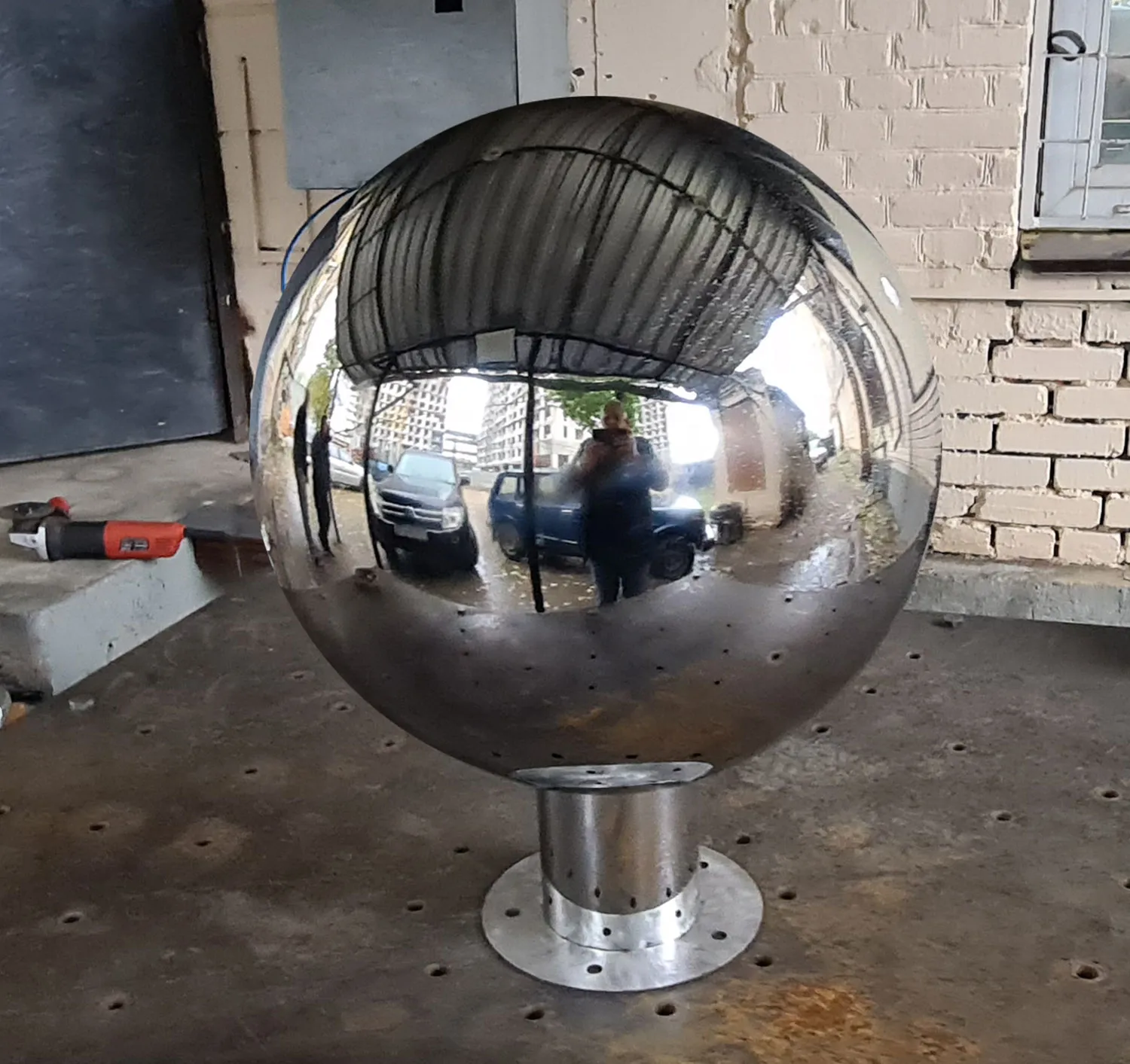 Полые зеркальные шары из нержавеющей стали используются как наружное украшение во многих проектах связанных с ландшафтным дизайном. Сферы с отделкой до зеркала создают точку притяжения и приковывают внимание зрителя.